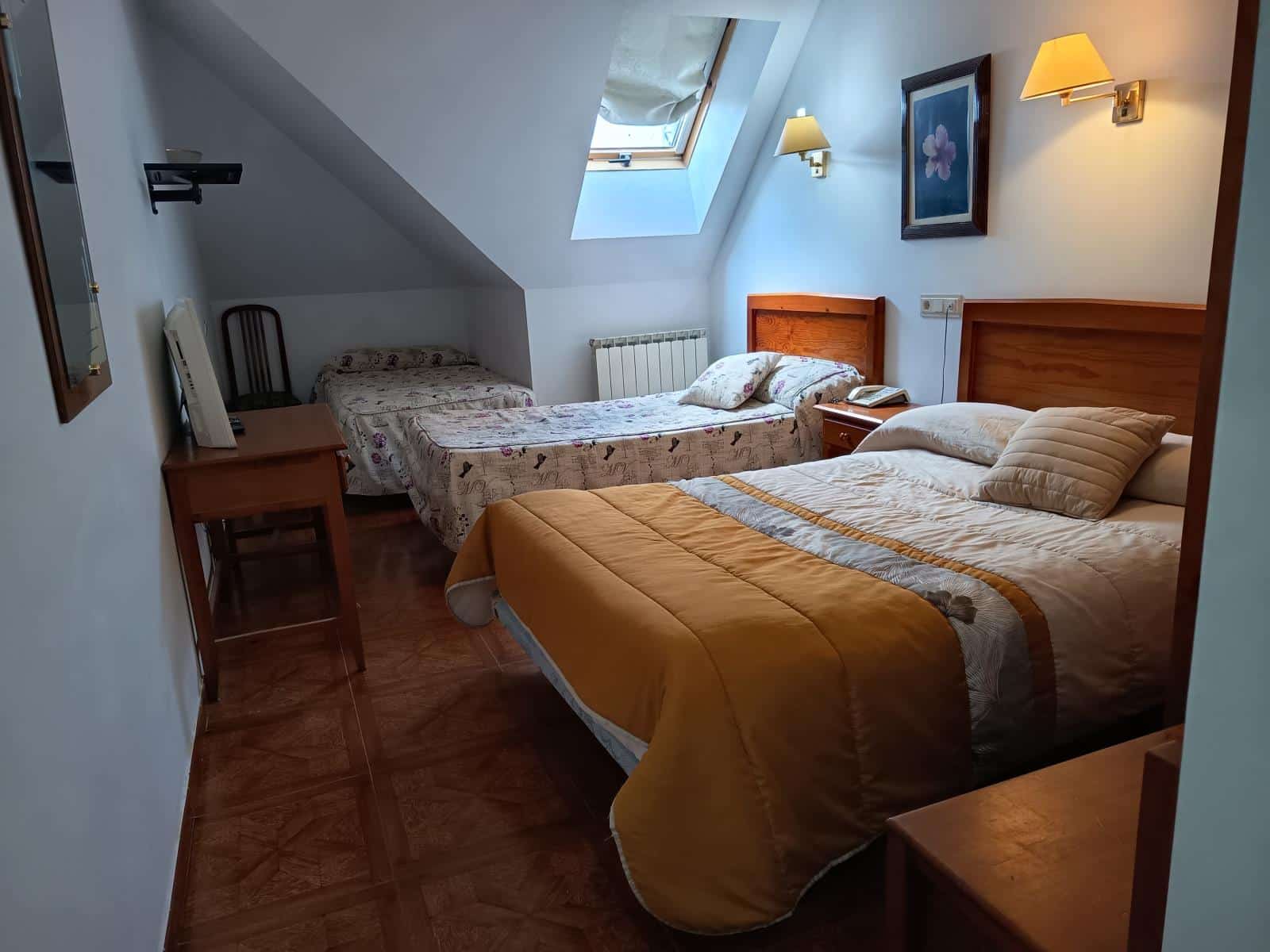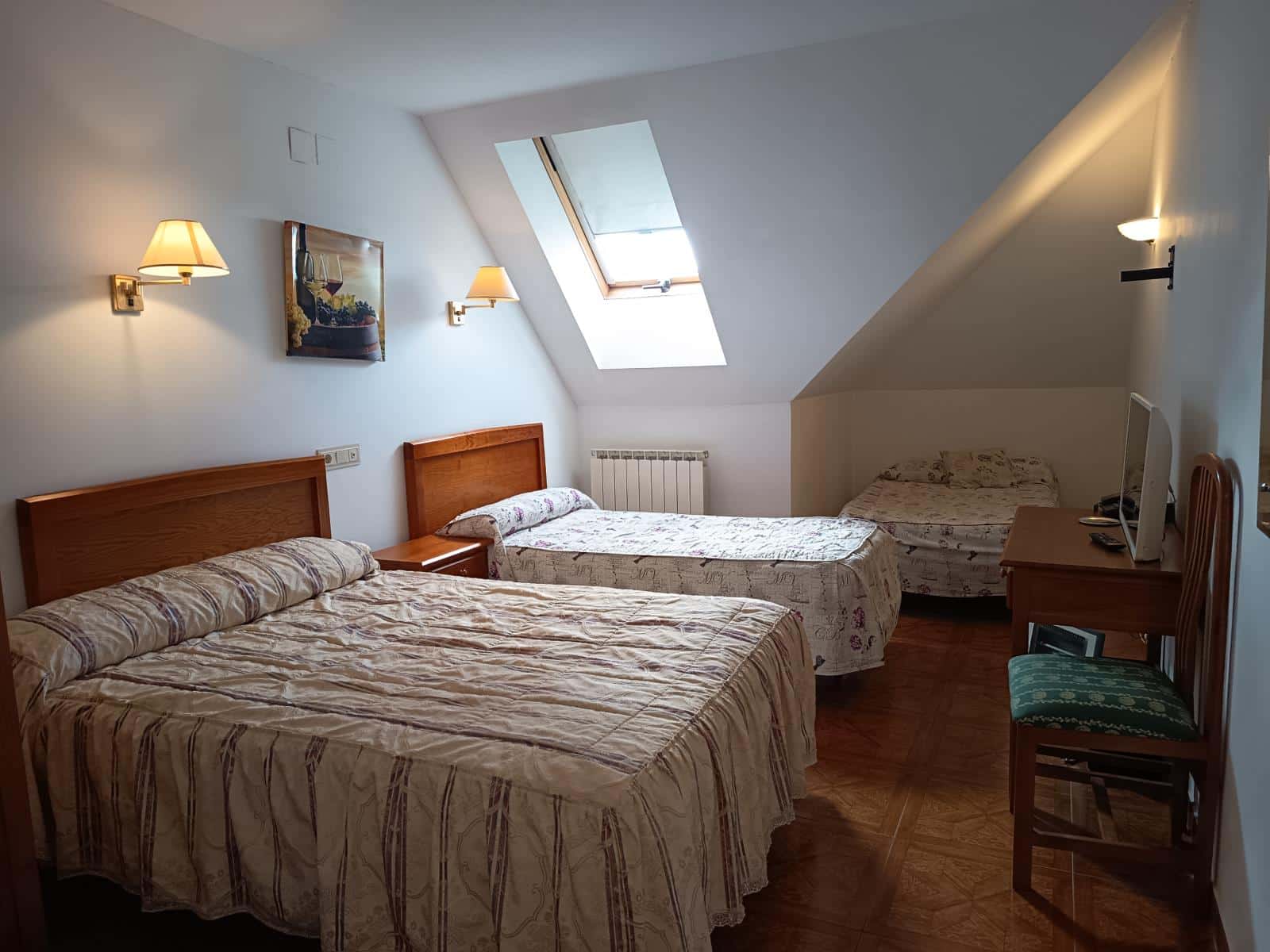 La habitación triple acoge a un máximo de 4 personas en una amplia cama para una pareja o una persona y dos camas individuales.